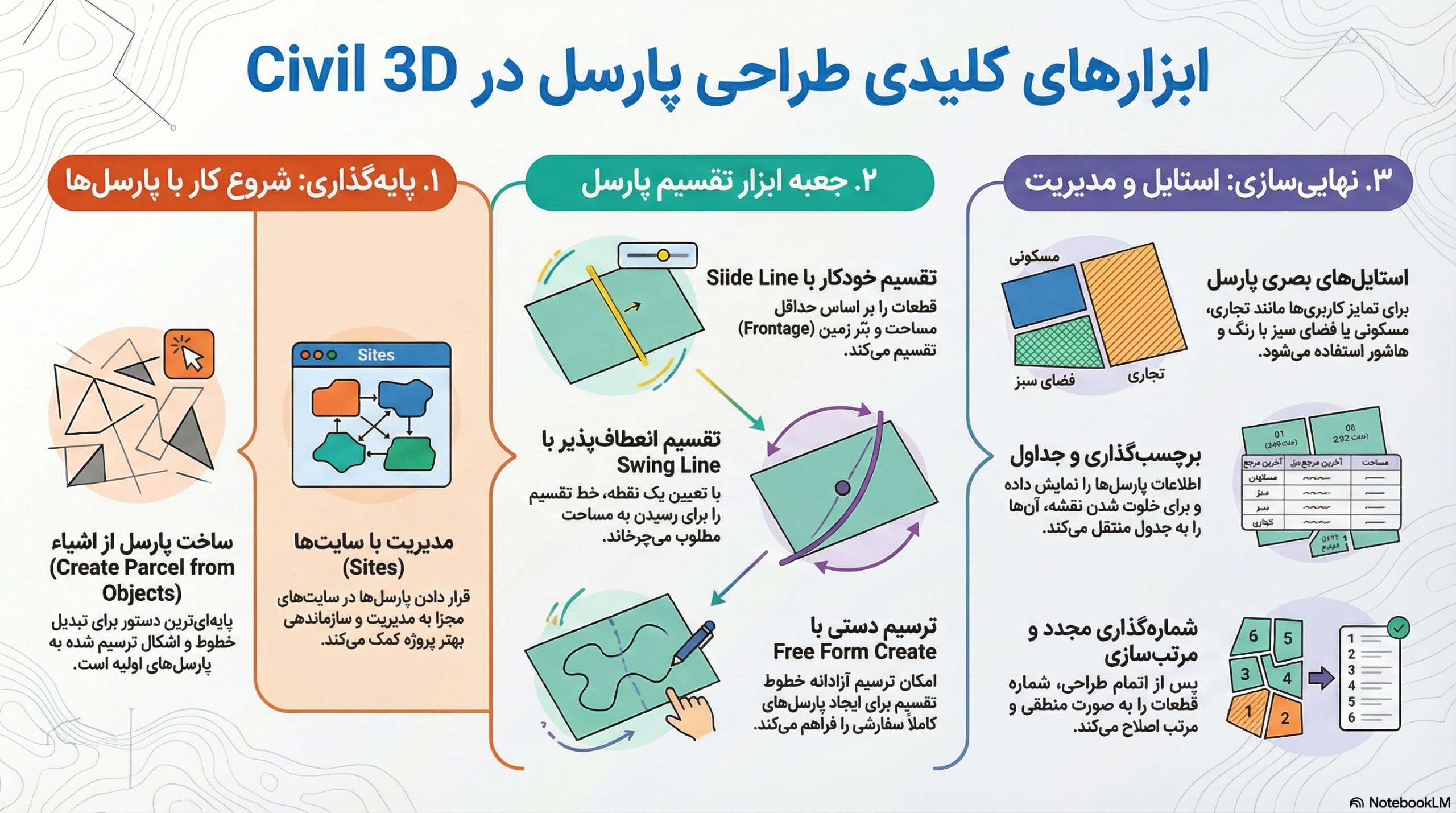از قابلیتهای پیشرفته Civil 3D برای بهینهسازی طراحی پارسلها بهره ببرید.